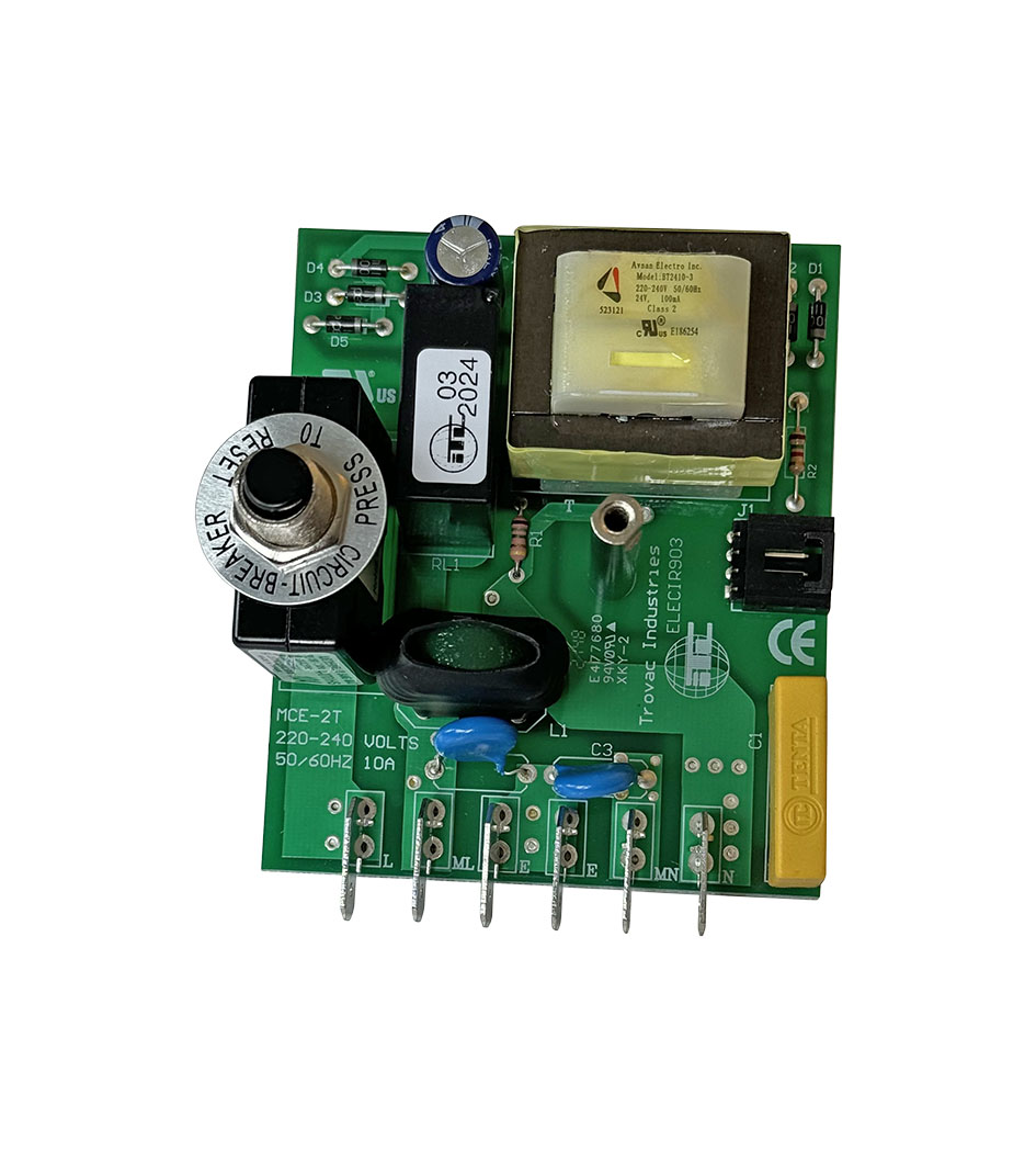 Kretskortet är utrustat med: Överströmsskydd och separat svagströmsanslutning med anslutningskontakt.