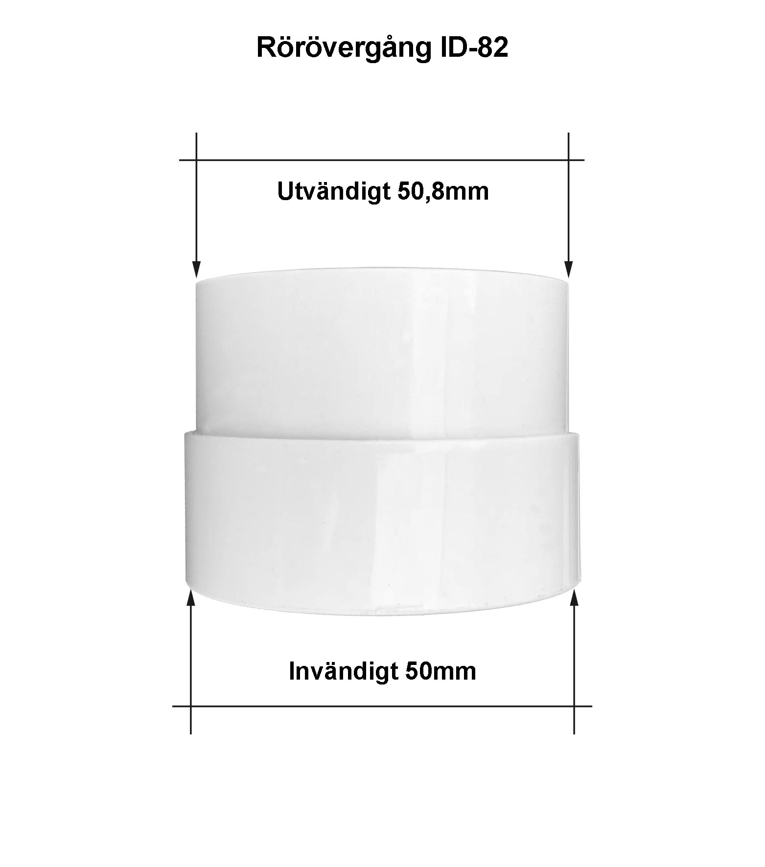 Rörövergång ID-82. Övergång invändigt 50mm till utvändigt 50,8mmAnvänds bl.a som övergång till mellan 50mm PP/PVC rör och 50,8mm vakuumrör.