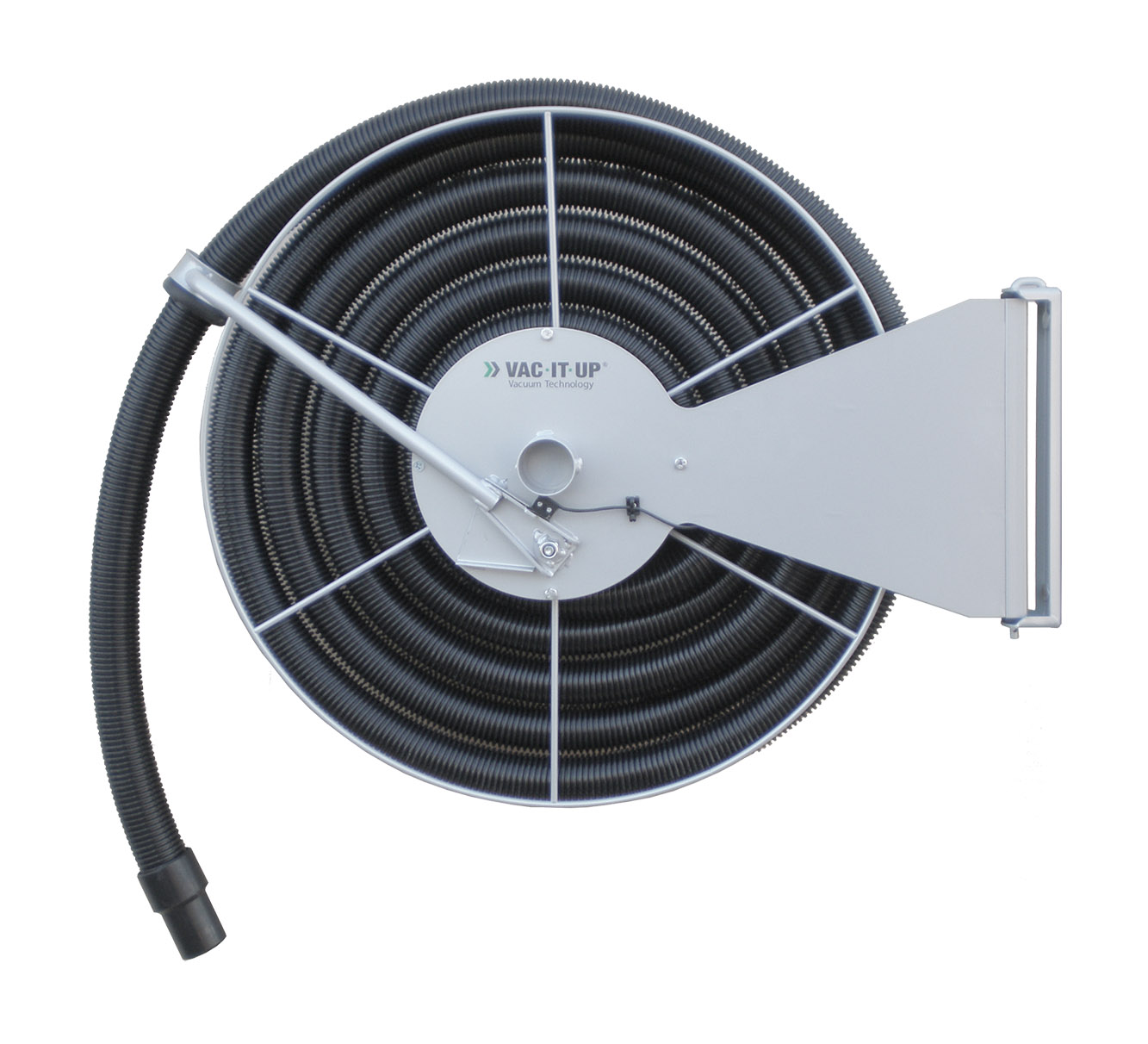 Anslutningsdiameter på slangvinda är 50mm. Levereras med svängbart fäste och antistatisk sugslang.